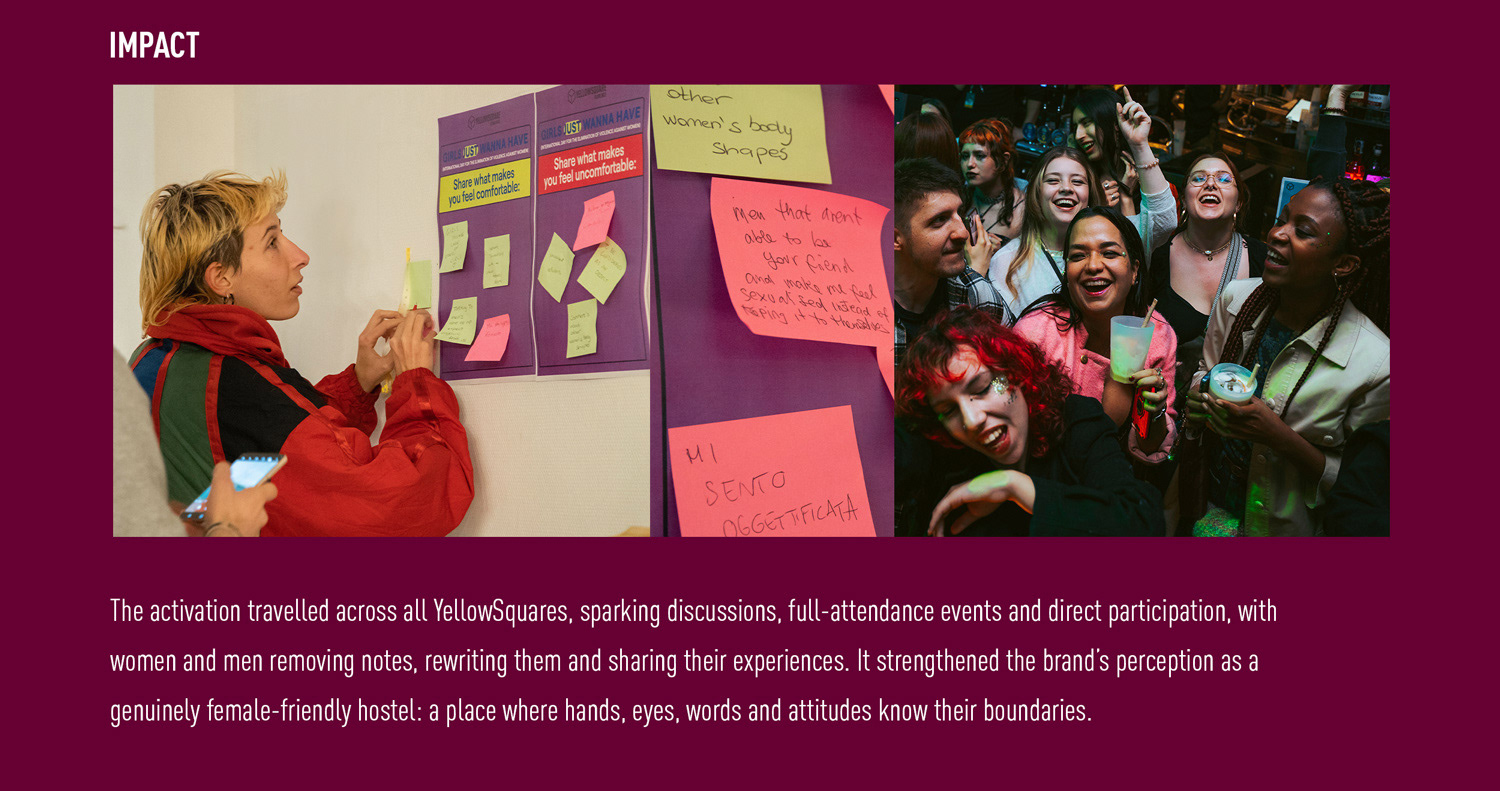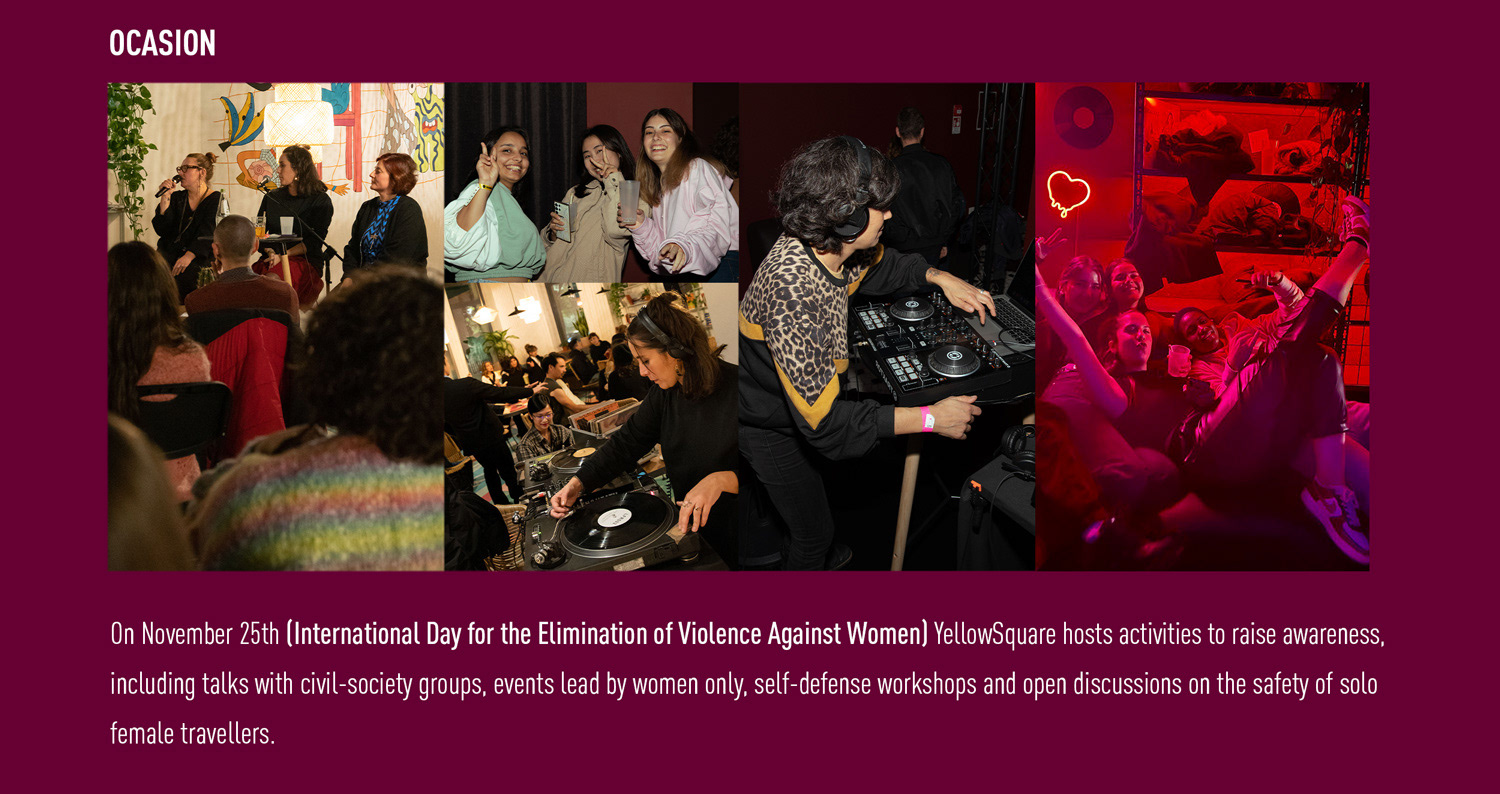 YellowSquare is a growing Italian design hospitality chain for young travellers, with locations in Rome, Milan, Florence and Athens. Beyond accommodation, it works as a cultural hub with parties, workshops, talks, concerts, co-working spaces, hair salon and more. As an in-house creative, I had the chance to fully immerse myself in the brand’s daily operations, culture and the community that shapes it.