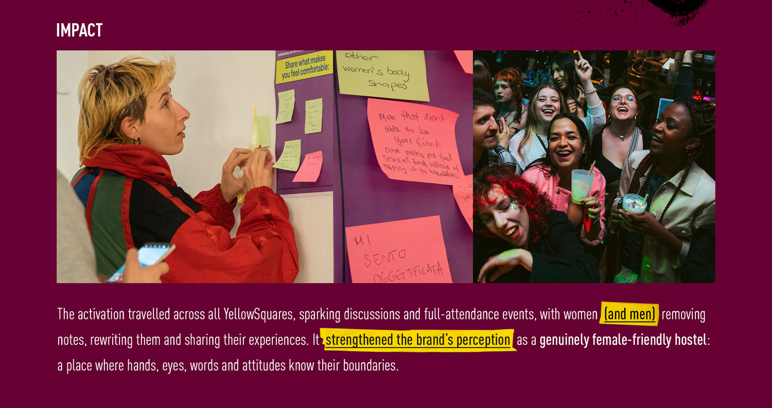 YellowSquare is a growing Italian design hospitality chain for young travellers, with locations in Rome, Milan, Florence and Athens. Beyond accommodation, it acts as a cultural hub with parties, workshops, talks and co-working spaces. As an in-house creative, I worked across the brand’s daily operations to translate its vibrant energy into consistent and professional communication for travellers, locals, partners and investors.